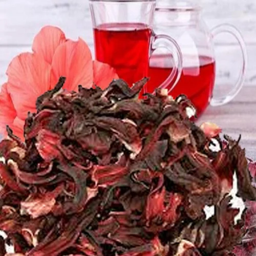 الكركدي (Hibiscus sabdariffa)، لونها أحمر غامق وطعمها حامض منعش.