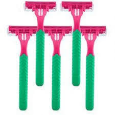 ماكينات حلاقة نسائية من Avuva، تأتي في كيس يحتوي على 5 قطع. مصممة لتمنح حلاقة سلسة وناعمة بدون تهيج، مع مقبض مريح وسهلة الاستخدام لإزالة الشعر بسرعة وأمان.
